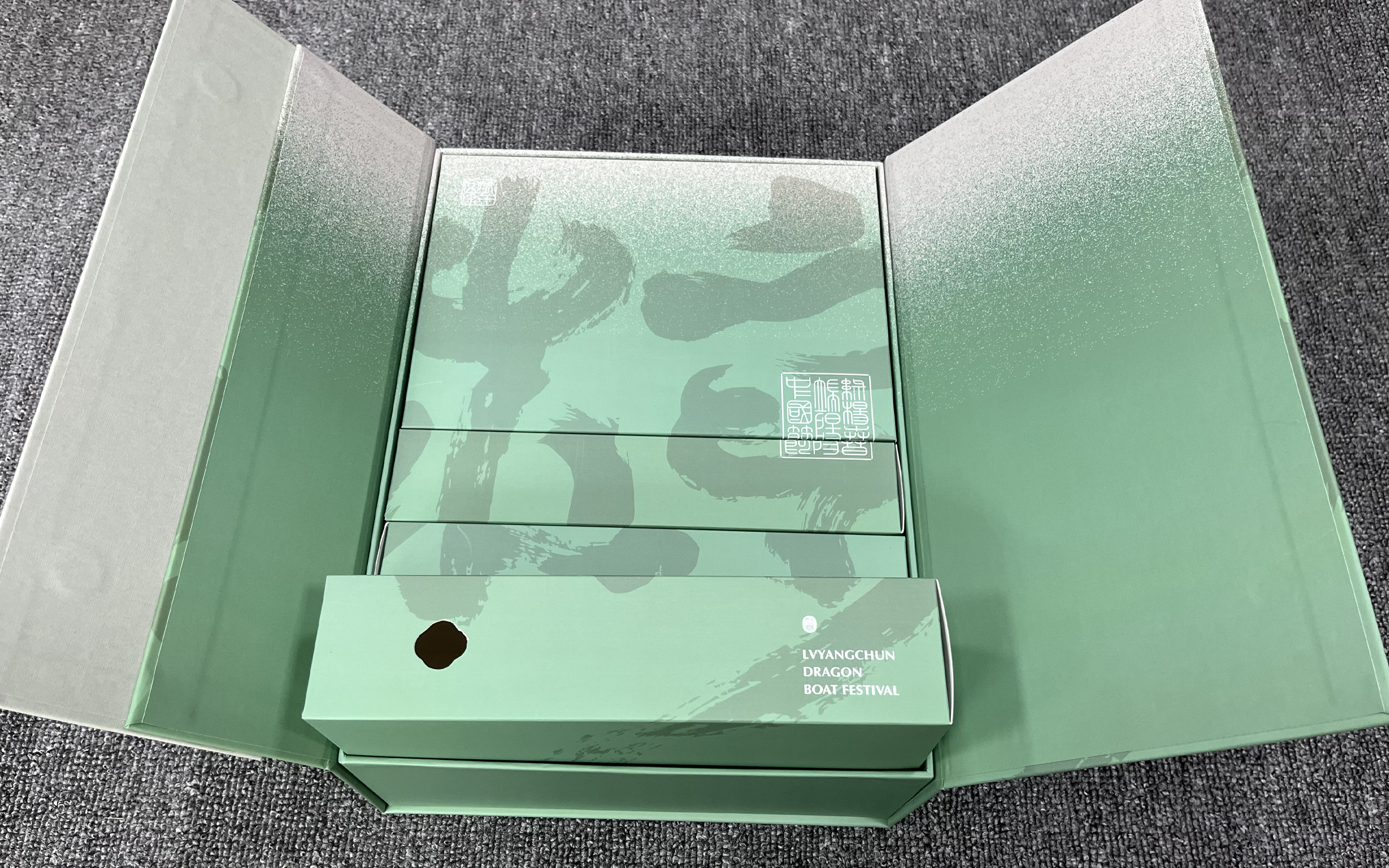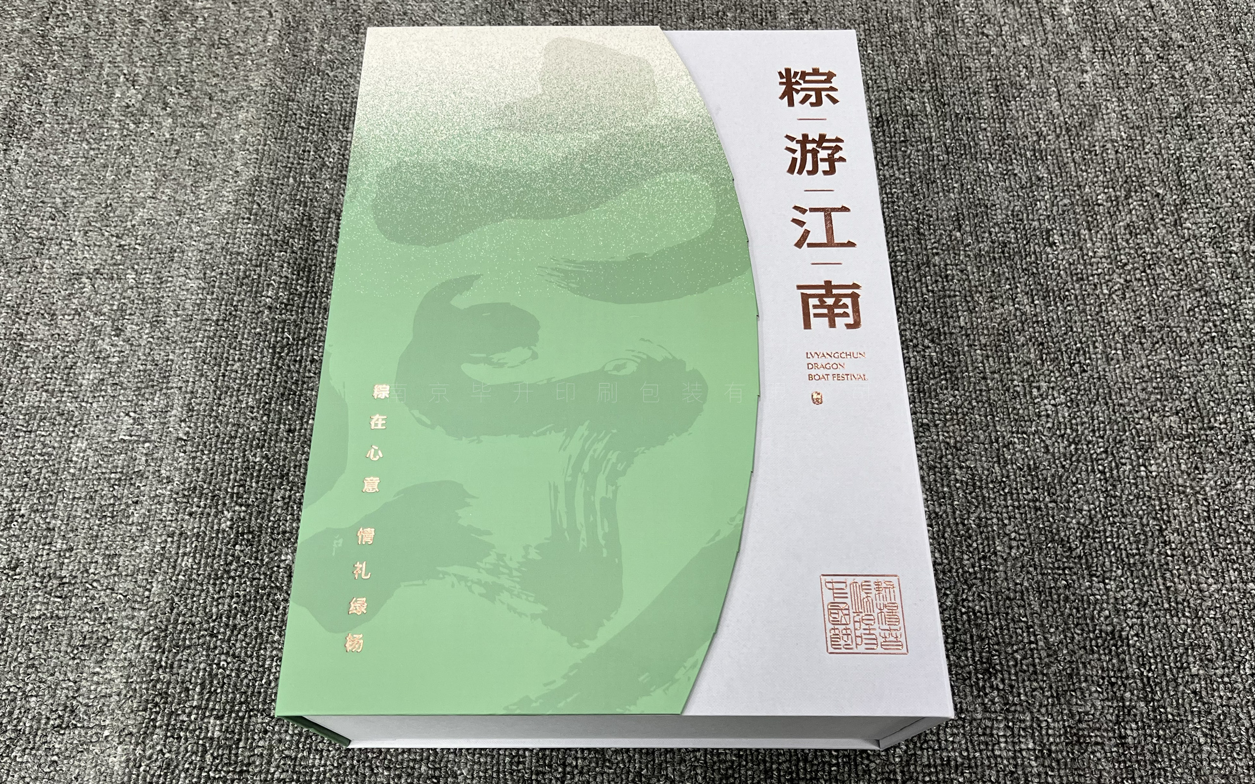 南京粽子禮盒定制,粽子心意,情在綠楊春。禮盒采用多種工藝(燙黑金、燙銀、燙玫瑰金、壓布紋、壓點(diǎn)紋、覆膜等);盒型也同時(shí)使用直角翻蓋和圓角翻蓋2種盒型。內(nèi)盒使用350g食品級(jí)白卡海德堡四色印刷;既保證了顏色的鮮艷,又確保結(jié)構(gòu)穩(wěn)定。南京高端粽子禮盒定制,南京畢升印刷包裝有限公司。
