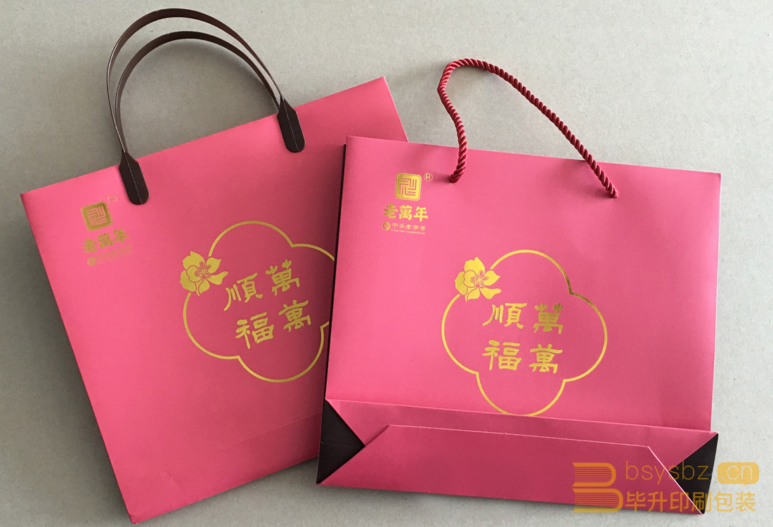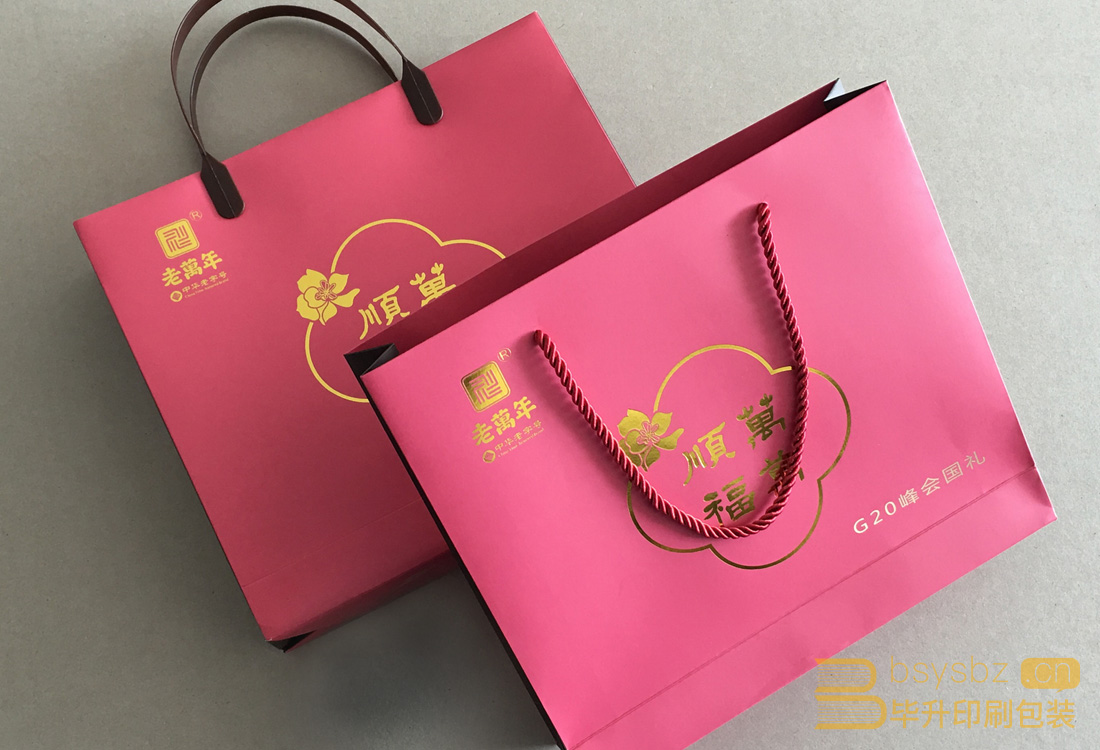 南京畢升印刷包裝有限公司為蘇州老萬年集團(tuán)優(yōu)質(zhì)合作伙伴單位,為其印刷生產(chǎn)的手提袋采用四色印刷加燙金的工藝,分別采用塑料手柄和三股繩,為G20峰會國禮品提供手提袋印刷打樣。畢升印刷為江蘇地區(qū)優(yōu)質(zhì)手提袋印刷生產(chǎn)商。蘇州老萬年集團(tuán)是一家專注中國傳統(tǒng)文化傳承與弘揚(yáng)的大型文創(chuàng)企業(yè),下屬蘇州老萬年金銀有限公司、老萬年文化發(fā)展有限公司、老萬年藝術(shù)館三個(gè)組分。