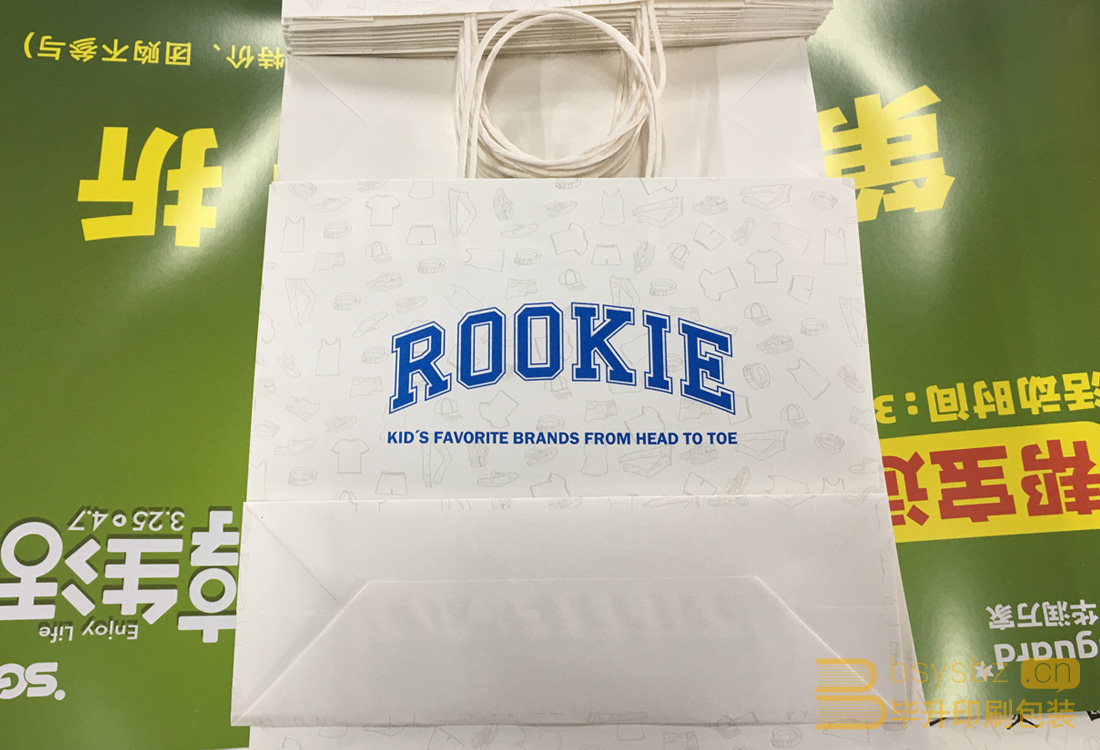 rookie品牌手提袋采用優(yōu)質(zhì)白牛皮紙四色印刷,上全自動(dòng)糊袋機(jī)。優(yōu)質(zhì)、高效、便宜的南京手提袋印刷供應(yīng)商得到了市場的認(rèn)可和客戶的好評(píng),南京手提袋印刷優(yōu)選畢升印刷包裝有限公司。如果您有手提袋印刷或者相關(guān)紙質(zhì)印刷品的需求請(qǐng)聯(lián)系我們,必將給您一個(gè)勁爆的價(jià)格。