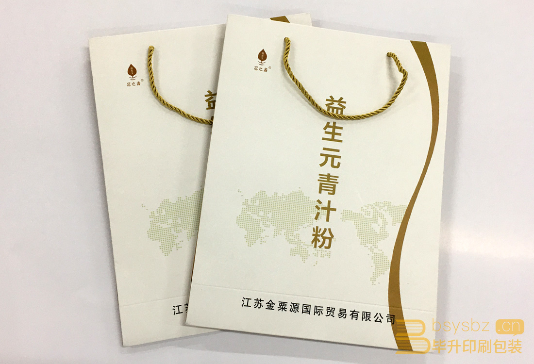 益生元青汁粉手提袋印刷、金粟源國際貿(mào)易手提袋印刷制作