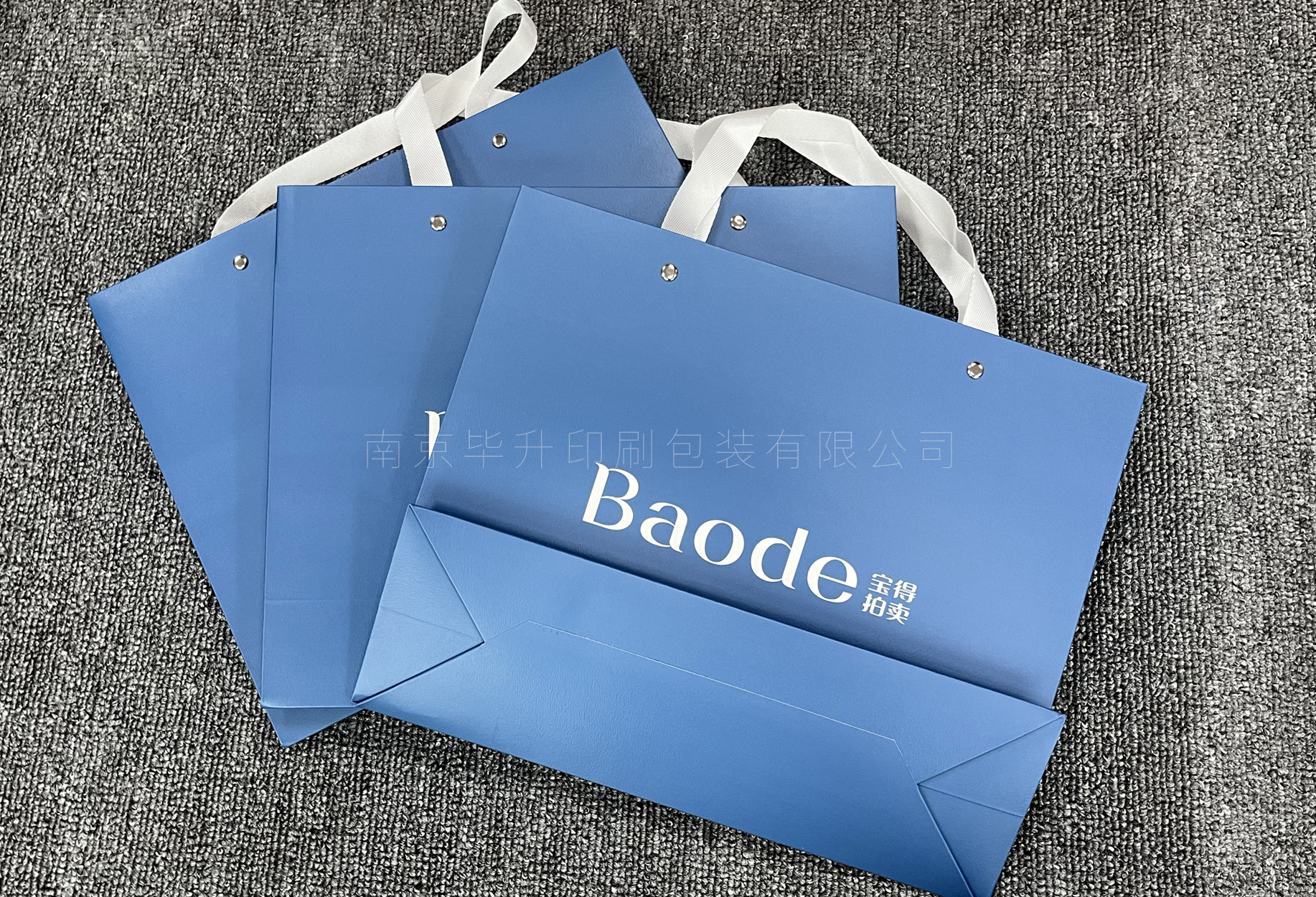 江蘇寶得國(guó)際拍賣有限公司是一家主營(yíng)文物藝術(shù)品拍賣、公益拍賣、藝術(shù)空間運(yùn)營(yíng)、藝術(shù)品投資與金融服務(wù)的多元服務(wù)型拍賣公司。公司定制的手提袋采用250g白卡紙四色印刷、啞膜、壓紋、鉚釘、絲帶繩等工藝。高品質(zhì)手提袋專業(yè)定制,優(yōu)選南京畢升印刷包裝有限公司。