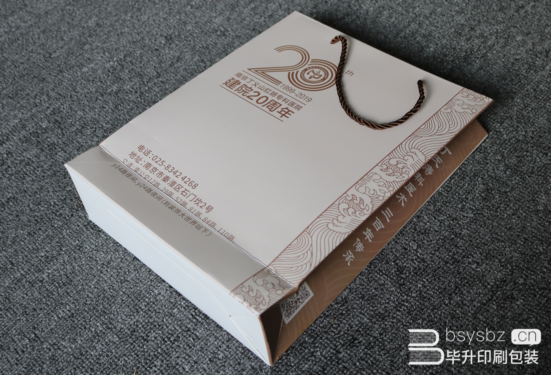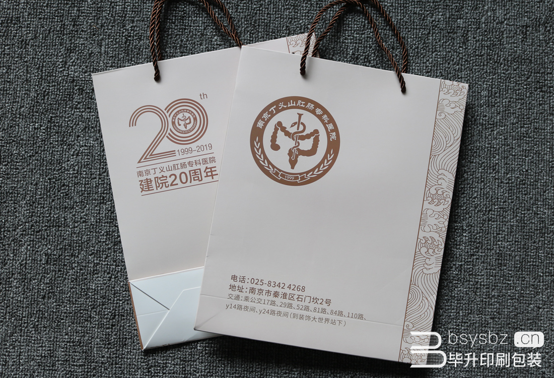 為慶祝醫(yī)院服務大眾20載這特殊的日子,南京丁義山肛腸專科醫(yī)院舉行免費義診活動。南京畢升印刷公司為其印刷手提袋5000個,整體使用醫(yī)院vi咖啡色,簡潔大方,配合整體色調(diào)高檔而不失醫(yī)者仁心本質(zhì)。
