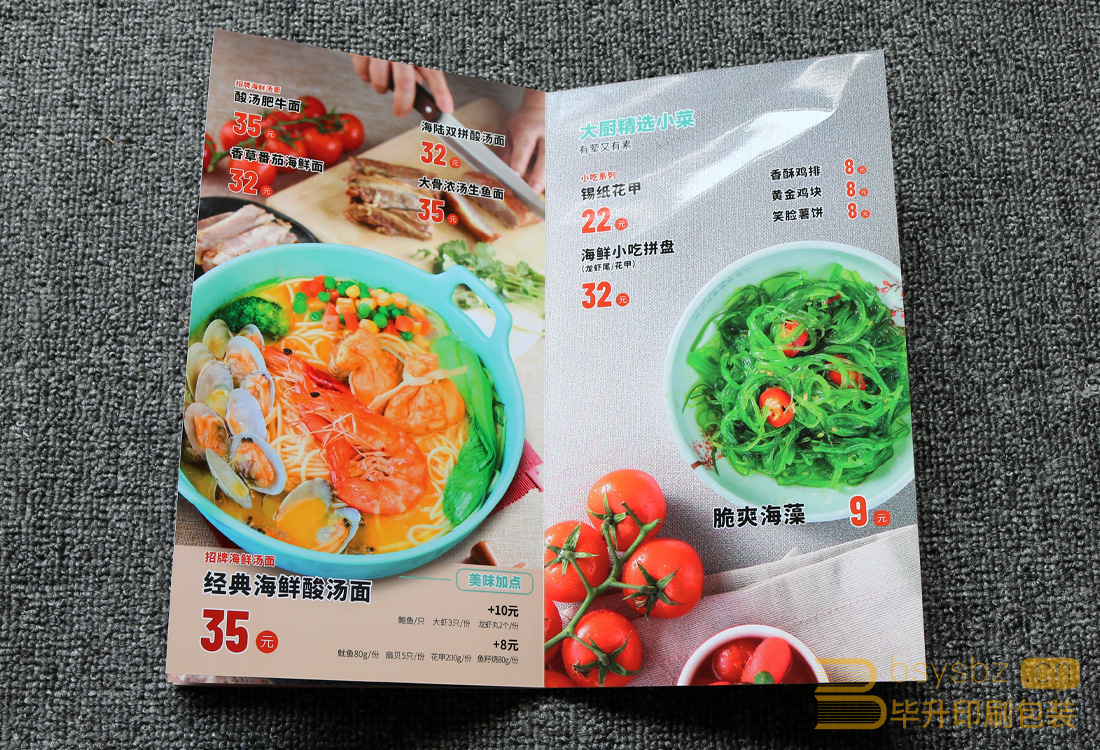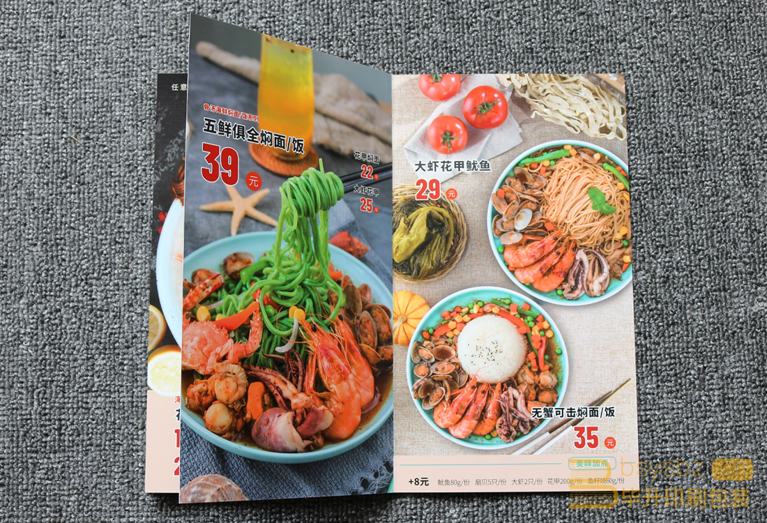 蝦米蝦面菜單印刷、蝴蝶裝畫冊印刷、南京軟精裝畫冊印刷
