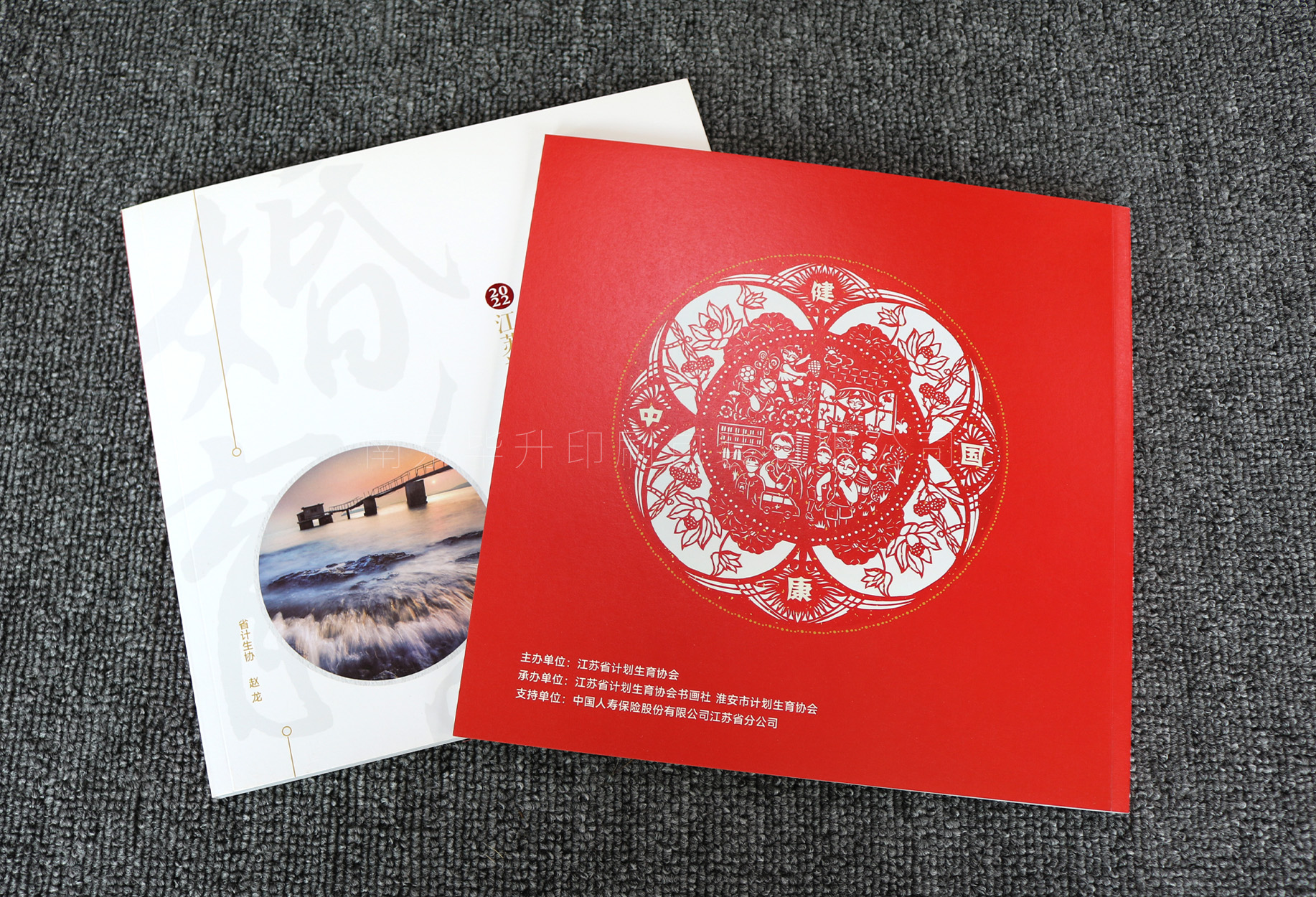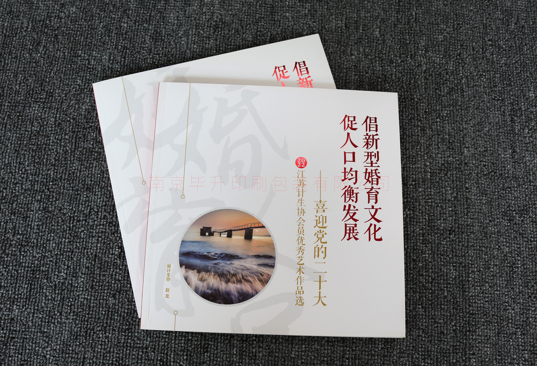 封面選用290g高階印畫(huà)海德堡四色精印+過(guò)啞油+燙紅金工藝,內(nèi)芯選用157g太空梭高級(jí)啞粉紙海德堡四色精??;鎖線裝訂工藝。倡新型婚育文化促人口均衡發(fā)展、喜迎黨的二十大江蘇計(jì)生協(xié)會(huì)會(huì)員優(yōu)秀藝術(shù)作品選,由南京畢升印刷包裝有限公司承辦。喜迎黨的二十大”主題“5.29會(huì)員活動(dòng)日”宣傳活動(dòng),為群眾講解三孩生育政策及配套支持措施,宣傳適齡婚育、優(yōu)生優(yōu)育、夫妻共擔(dān)育兒責(zé)任等新型婚育文化。